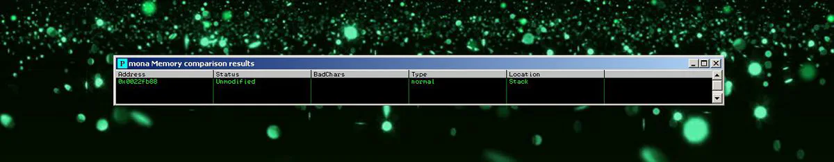 !mona compare -f C:\\monalogs\\helvio\_server\\bytearray.bin -a 0022FB88